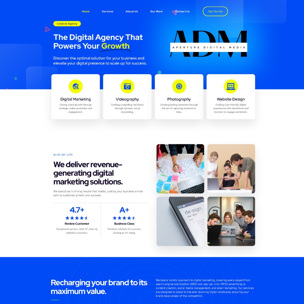 Aperture Digital Media is a creative agency specializing in digital marketing, videography, photography, and website design. They help businesses optimize their digital presence to scale for success.