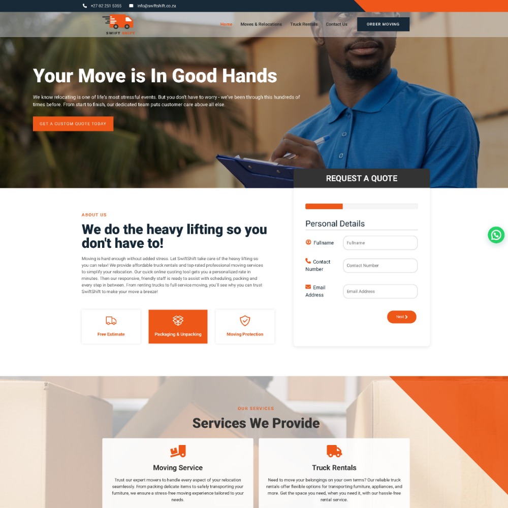 SwiftShift is a moving company specializing in residential and commercial moving services, offering truck rentals, packaging, and moving protection.